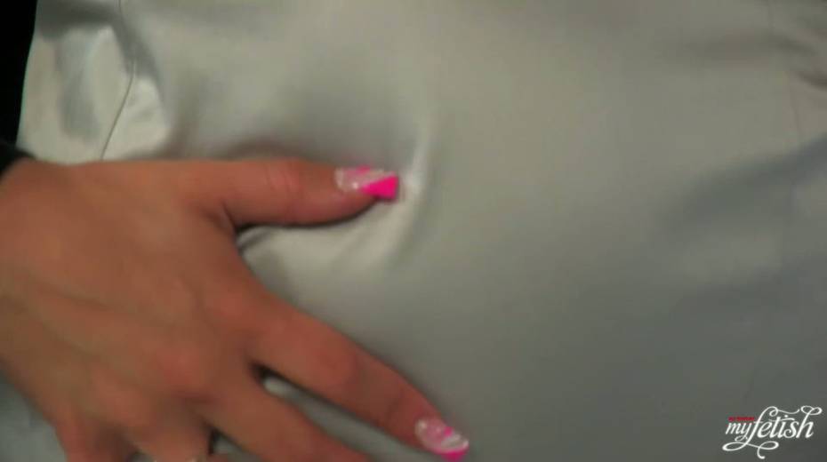 Two glamour lesbians wearing satin clothes suck fingers and touch asses