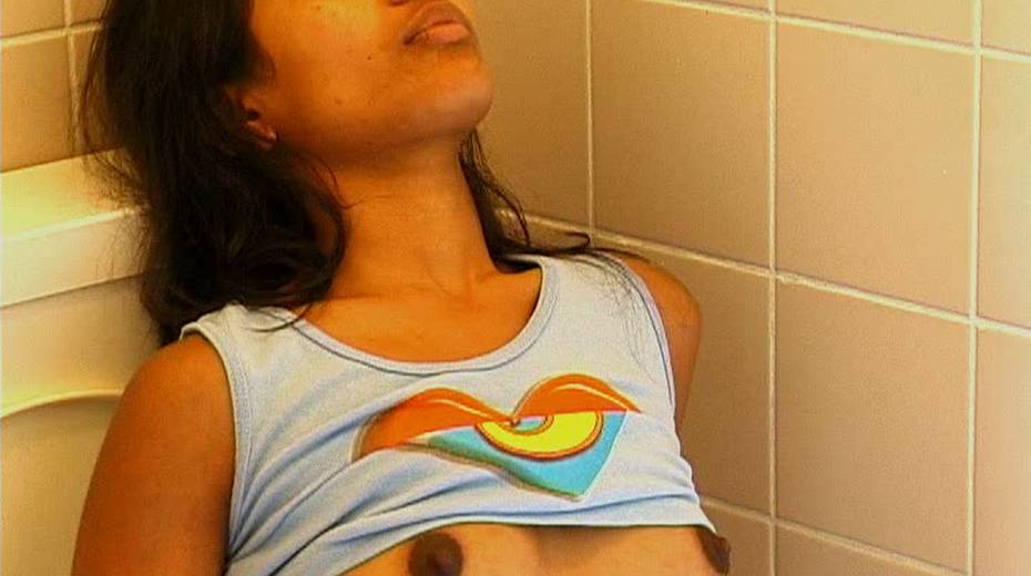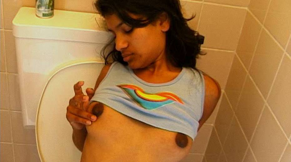 Public toilet is a perfect place for hot solo masturbation