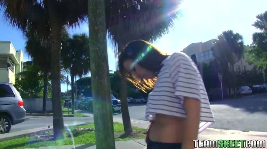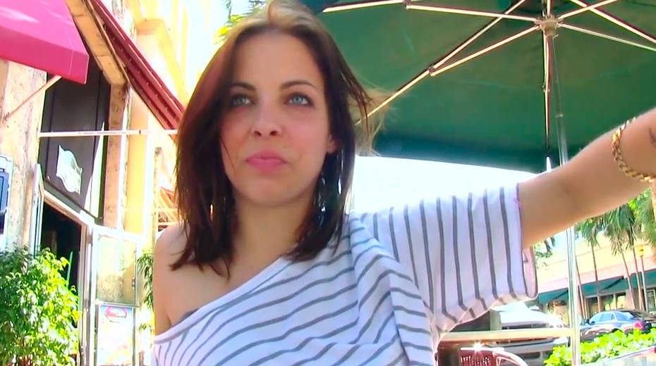 Pretty brunette gets seducted on public and sucks cock