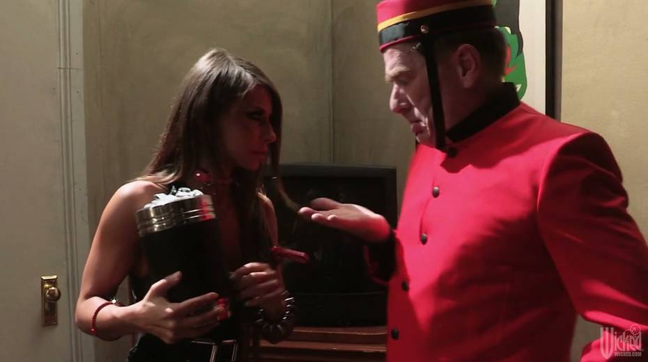 Jaw-dropping hottie gives her sex slave a nice blowjob
