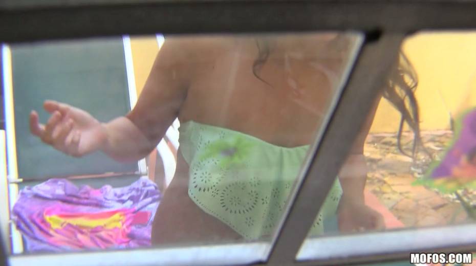 Red haired rapacious sex doll gives her kinky BF deep throat through dirty window