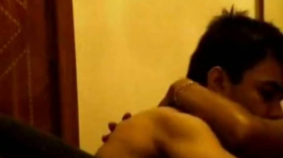 Sexually aroused desi strips and feels up his girl in amateur sex video