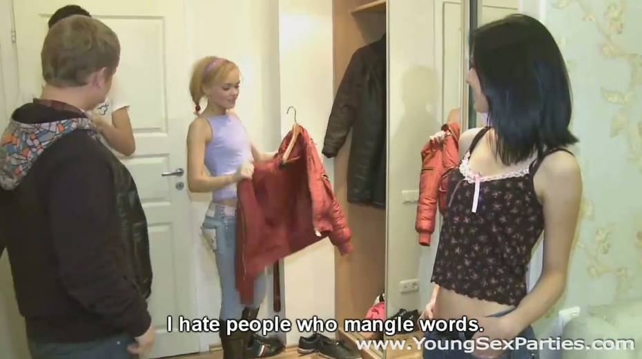 Feisty Russian teens perform awesome blowjob skills at kinky foursome action