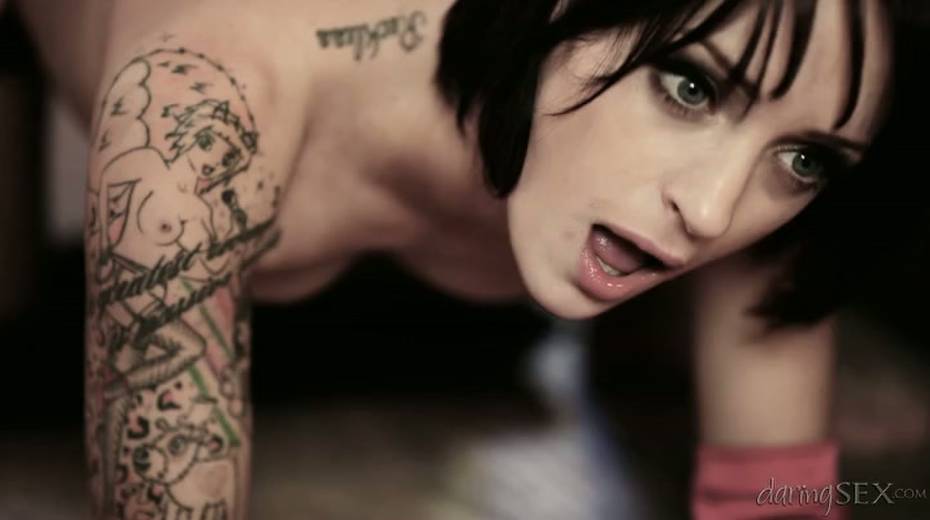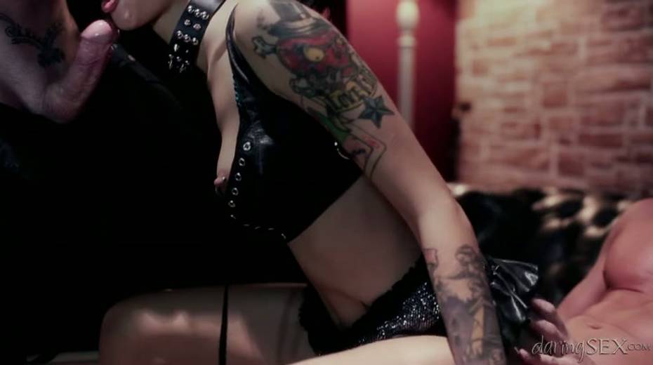 Raven haired filthy wench gets fucked by a couple of brutal dawgs