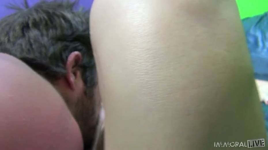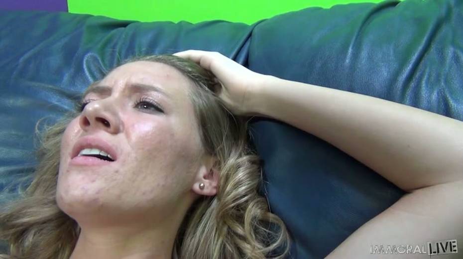 Filthy blond gal Alison Faye rubs her clit and gets banged in mish pose