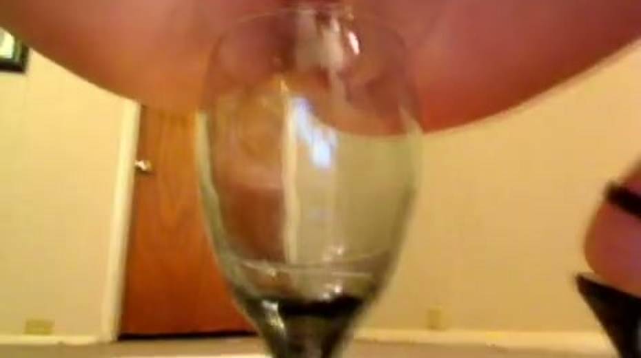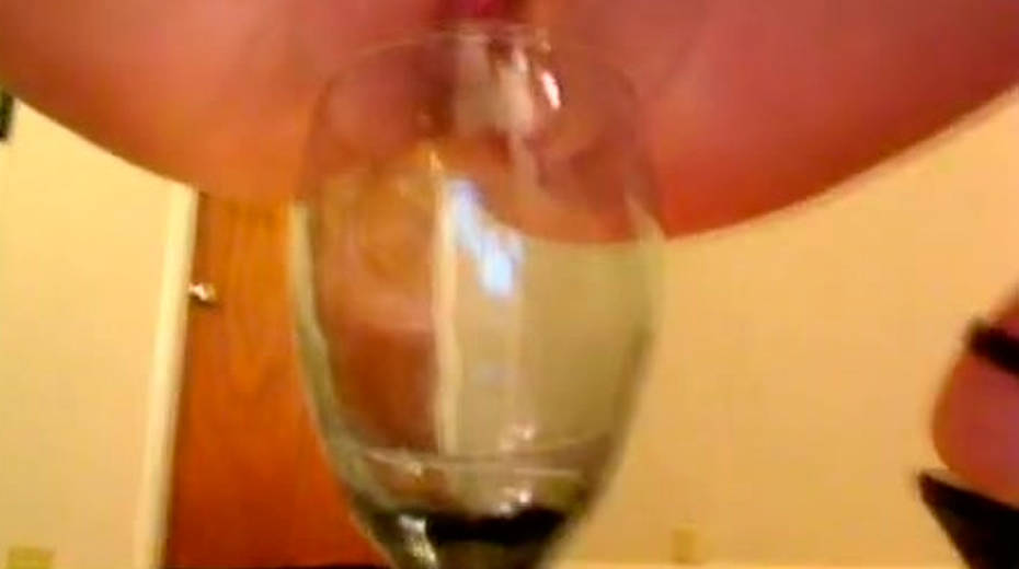 Lusty booty bitch Audrey pounds her anus with sex toy and squirts in glass