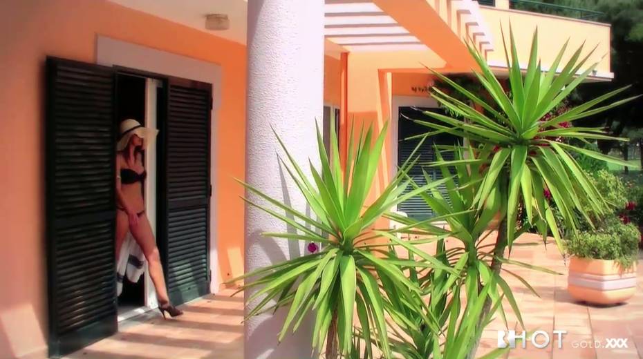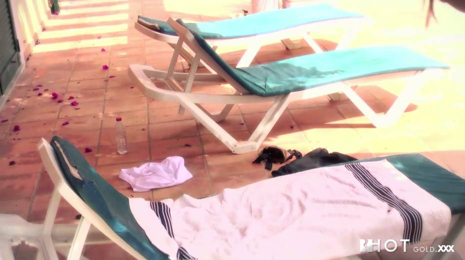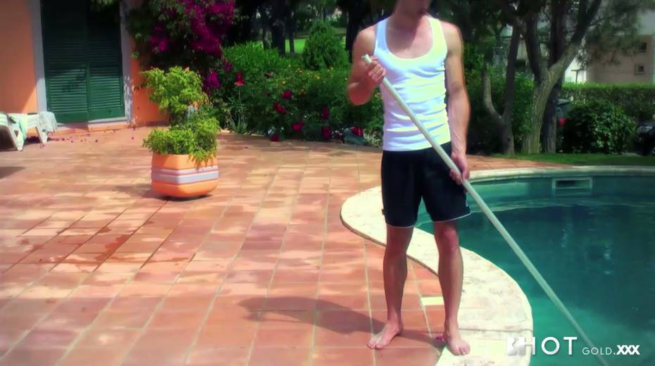 Sexy brunette bombshell Ana Mafalda fucks the pool boy on top