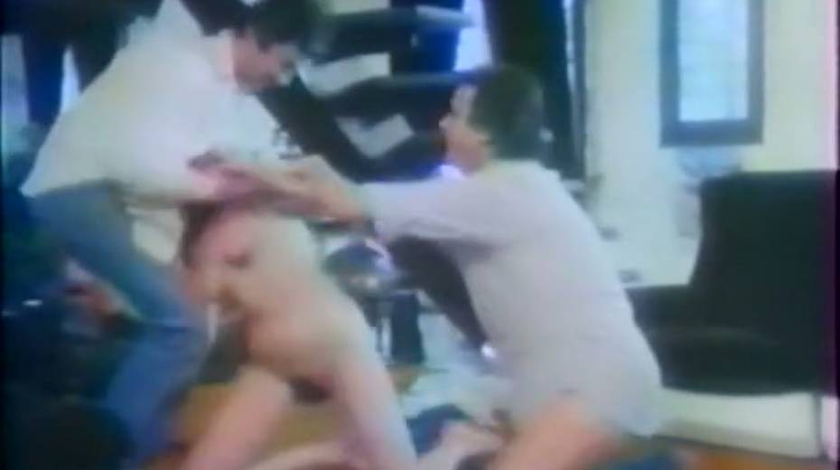 Lusty and skinny fair haired whore got attacked by two kinky guys