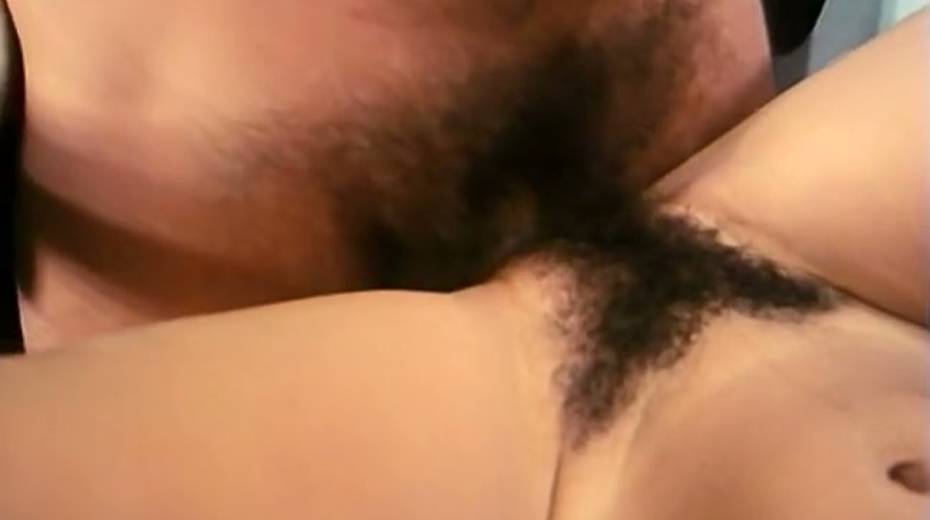 Cute brunette chick licks big cock and gets her hairy pussy fucked