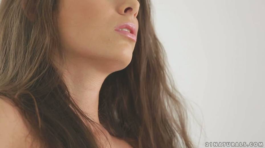 Smashing babe with yummy tits finger fucks her pretty pink pussy