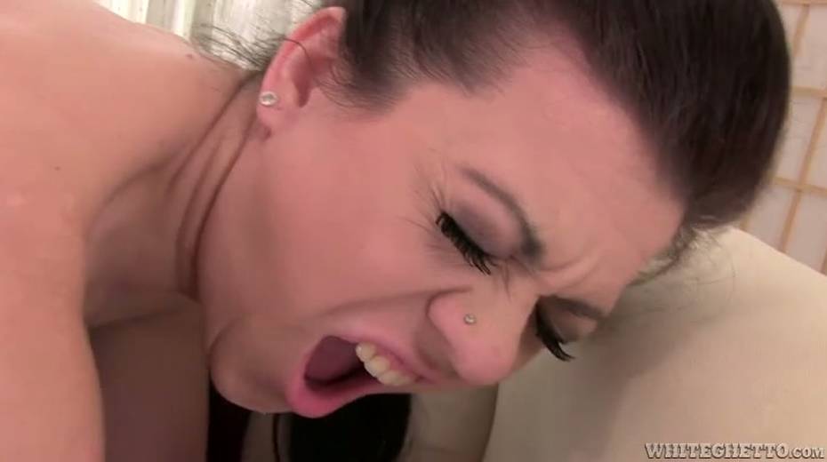 Lusty brunette gets her twat rammed hard doggy style and moans like wild bitch