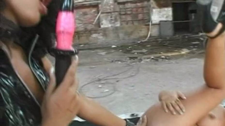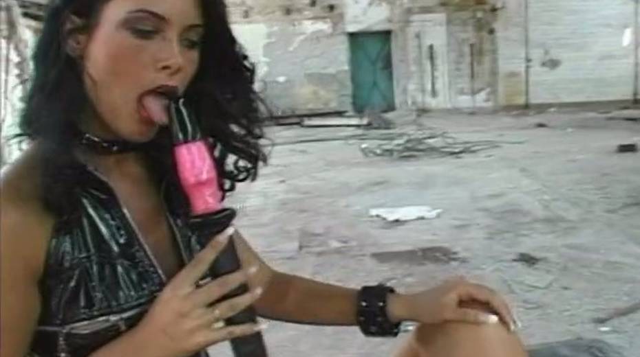 Lewd brunette latex domme observes the way studs fuck pale busty blondie