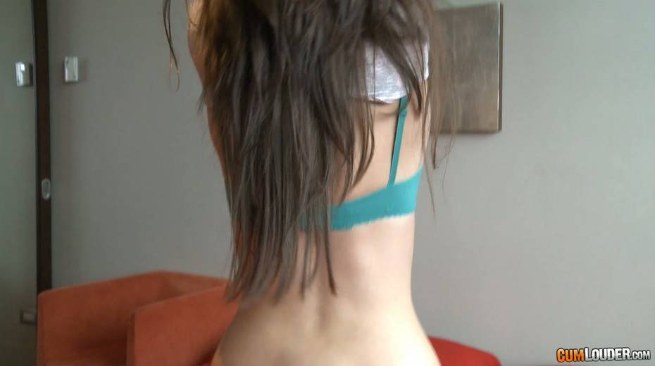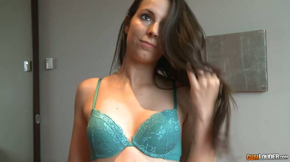 Gorgeous long haired brunette babe poses in her lingerie and blows dick
