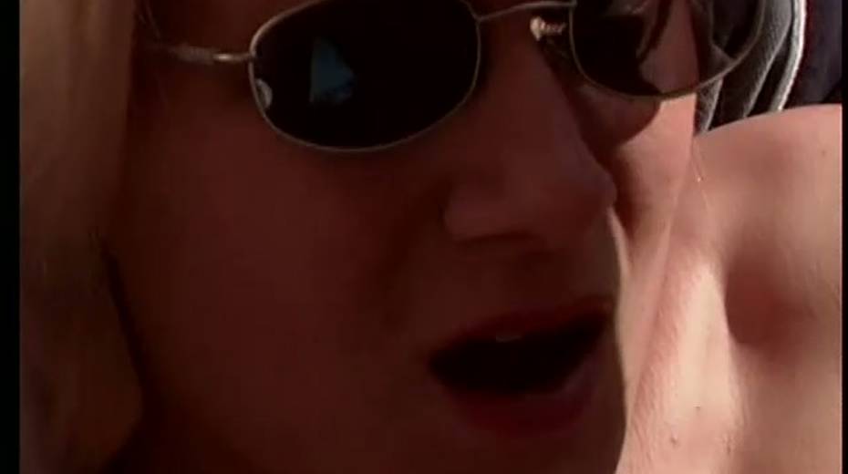 Wondrous blong haired bitch in sunglasses rides old dick of mature man