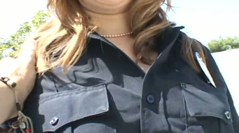 Stunning busty cop in uniform gets mouthfucked really hard by dude