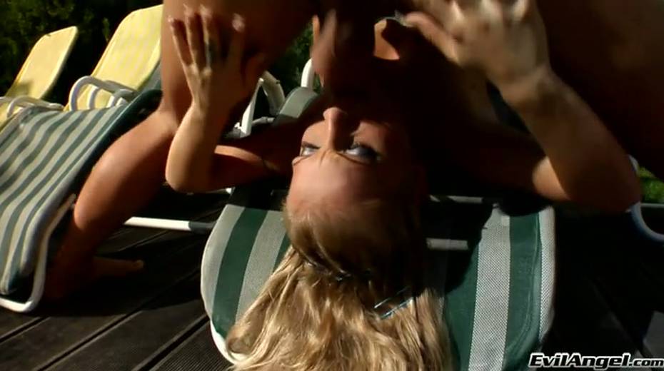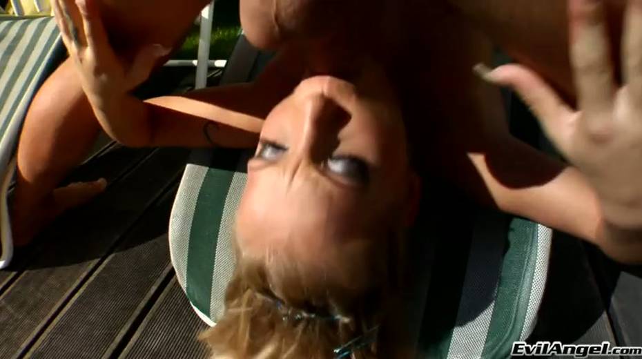 Busty horny blondie pleases her buddy with steamy deep throat in the yard