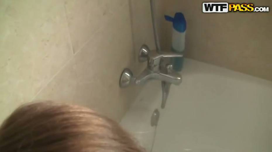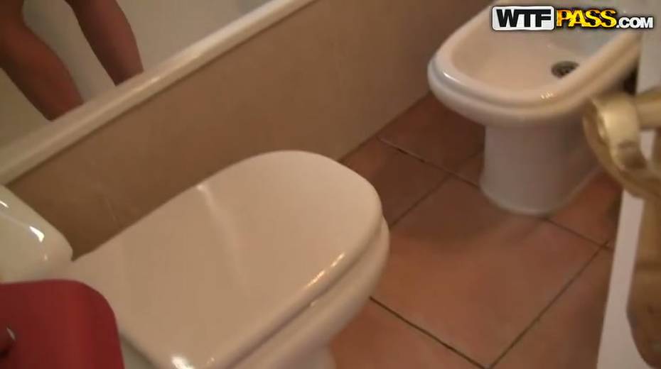 Feverish guy doggy fucks his leggy brunette sex pot in bathroom hard