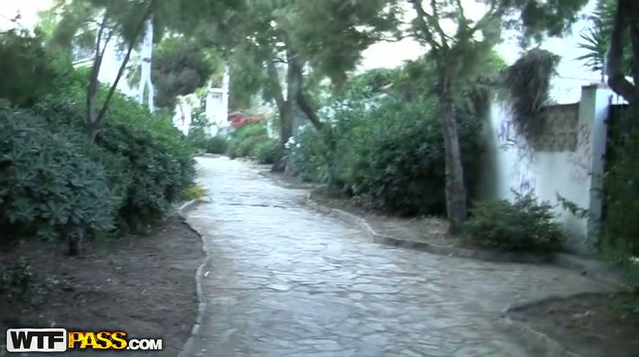 Slutty brunette wench pleases her BF with steamy blowjob outdoors