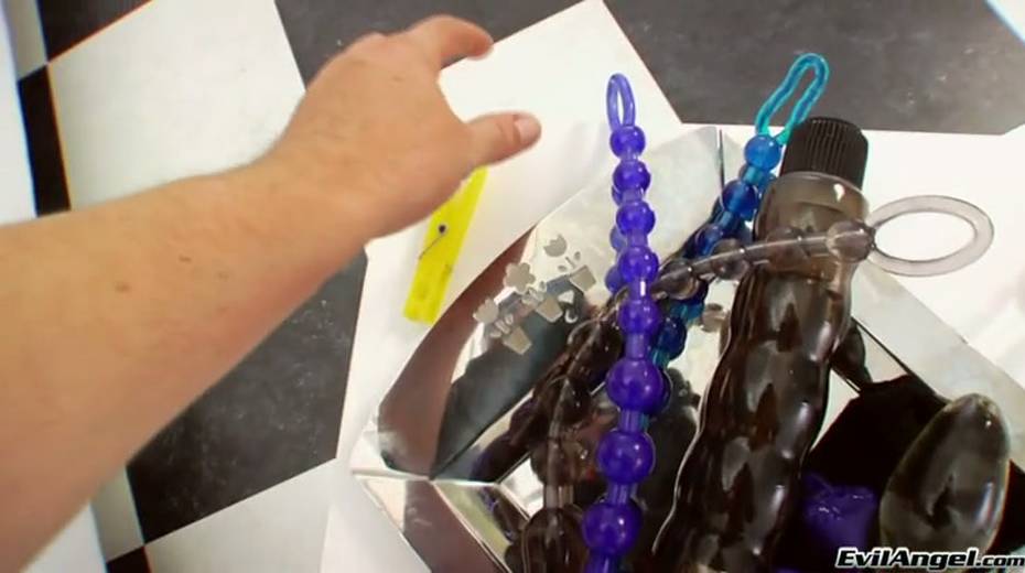 Freaky guy satisfies starving fuck holes of his booty blond bitch with dildos