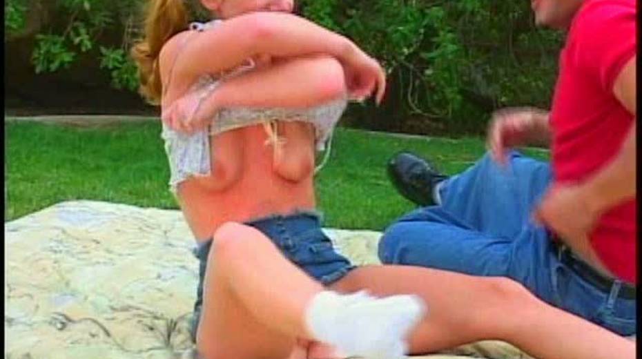 Redhead Gen Padova with pigtails provides dude with blowjob on picnic