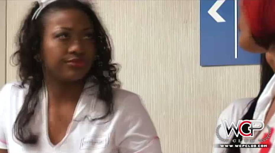 Ebony nurse gives blowjob to a horny BBC doctor and takes cumshots on her butt