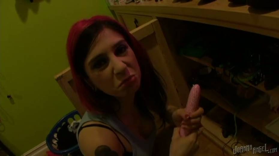 Bitchy red haired wench is gonna fuck herself with fake penis