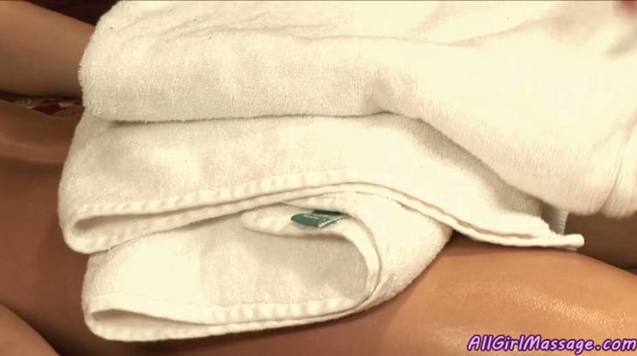 Mega busty brunette mom tickles shaved kitty of her naughty chick in massage parlor