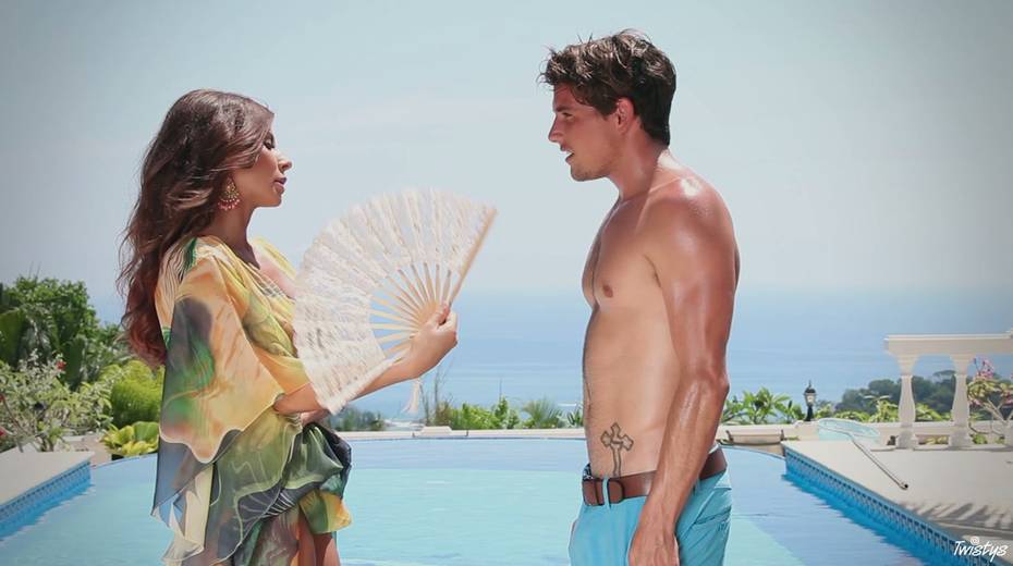 Big bosomed brunette babe blows sloppy dick of her horny boy greedily