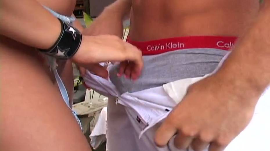 Sensual busty slut gets her shaved pussy fucked outdoor
