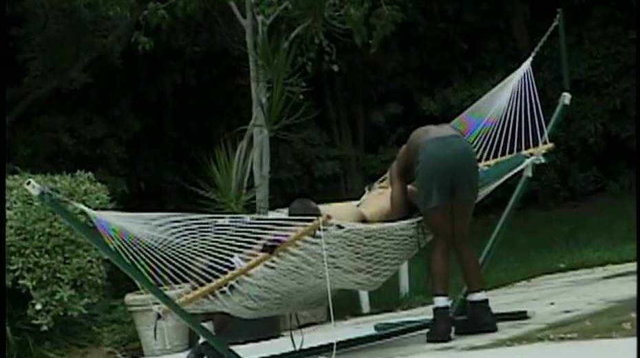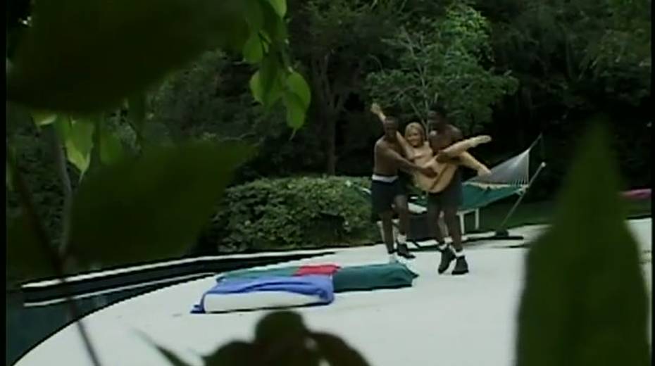 Lusty gal Julie Meadows is attacked by two heavy black dicks