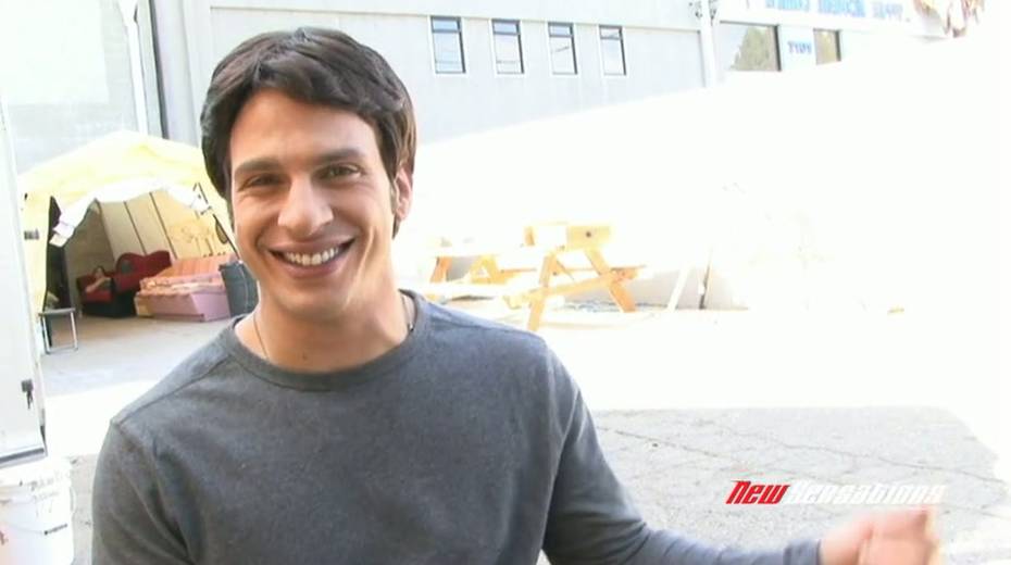 Short haired blonde topless nympho gives interview on camera