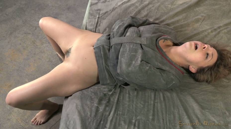 Fair haired sweetie gets bound in straightjacket and doggy fucked rough