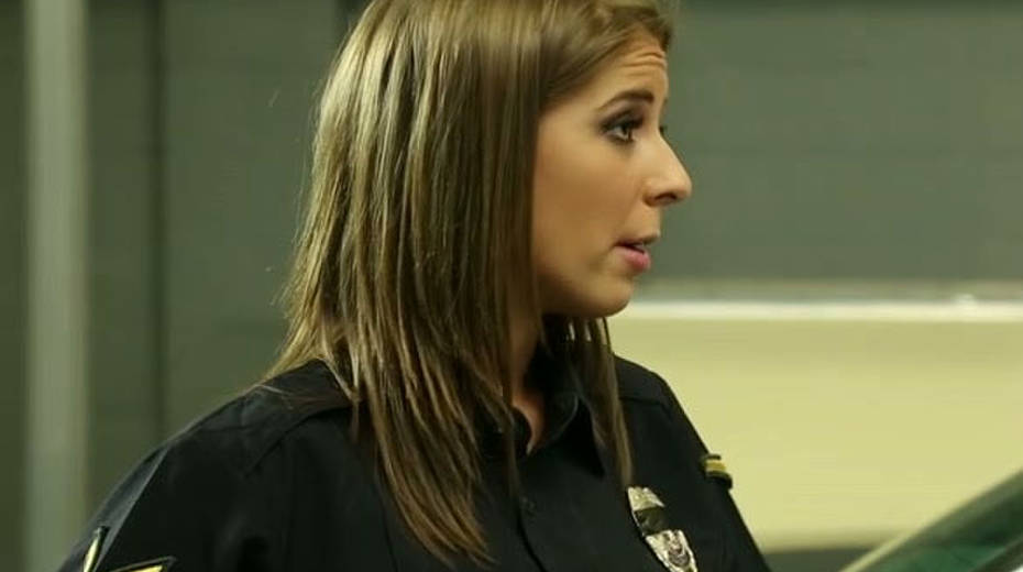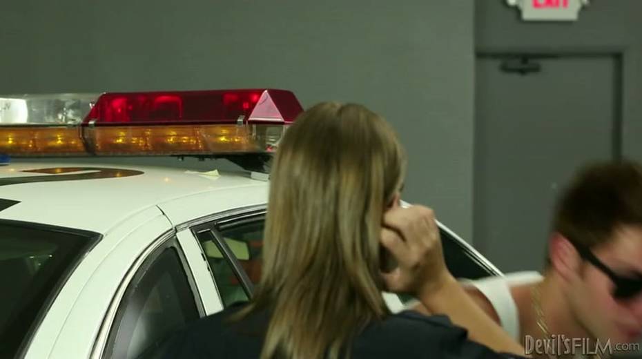 Seductive police babe gives eager blowjob to horny guy