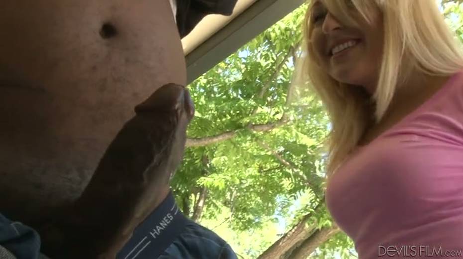 lecherous blonde gives good blowjob to well endowed BBC neighbor