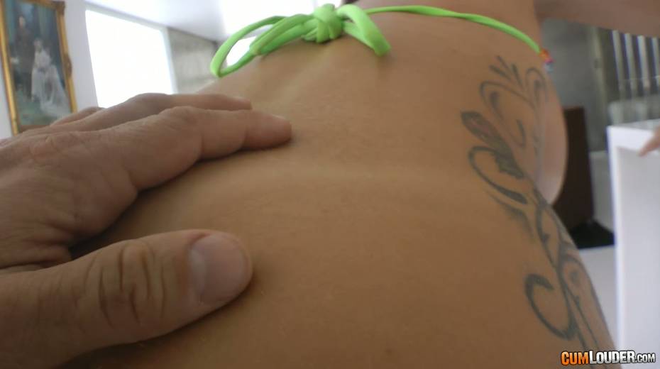 Tanned tattooed busty whore enjoys riding hard pole that belongs to her neighbor