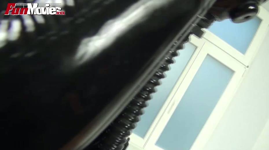 Latex chick finger fucks shaved pussy that belongs to one sensual blonde