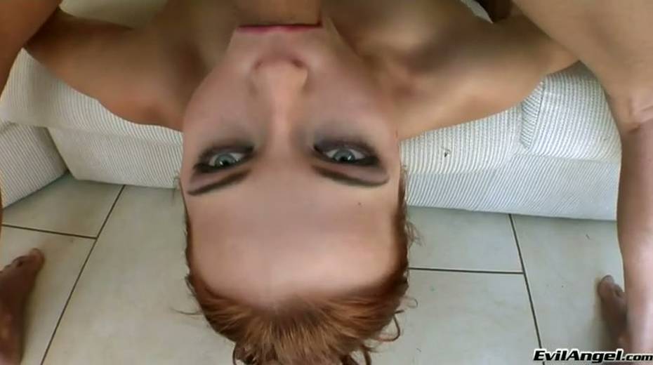 Dirty red haired chick in pink fishnets gets her anal hole fucked by a duo of studs