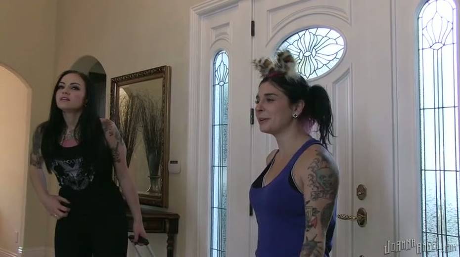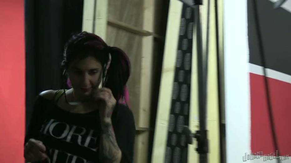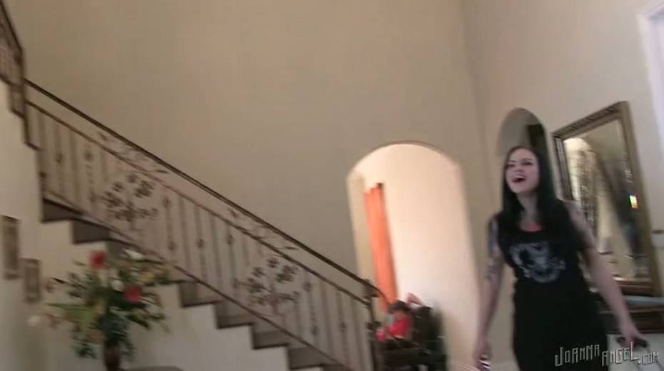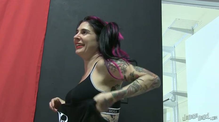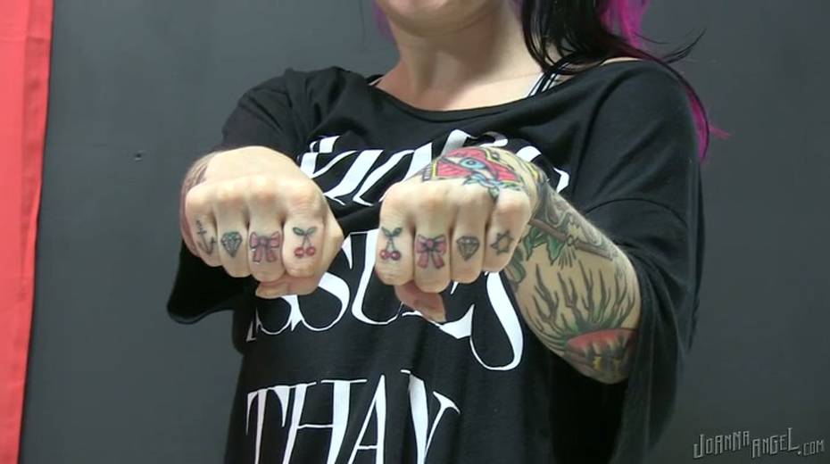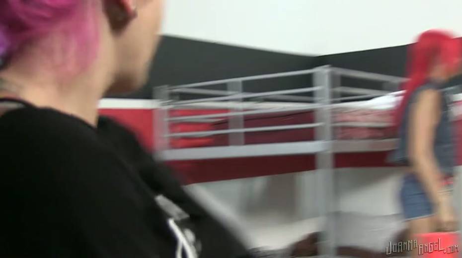 Sex-appeal chick with pink hair is playing with her shaved muff