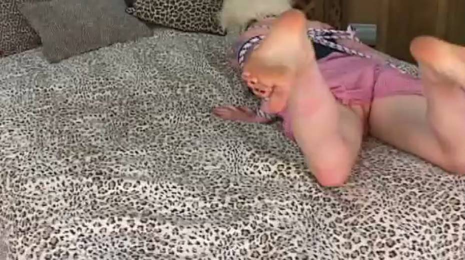 Old man fucks pussy of tied up chick and stimulates her muff with vibrator