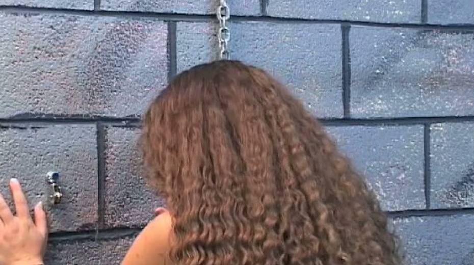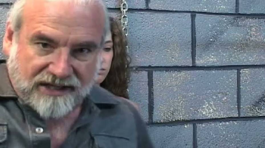 Long haired babe Nicole is punished by old pervert