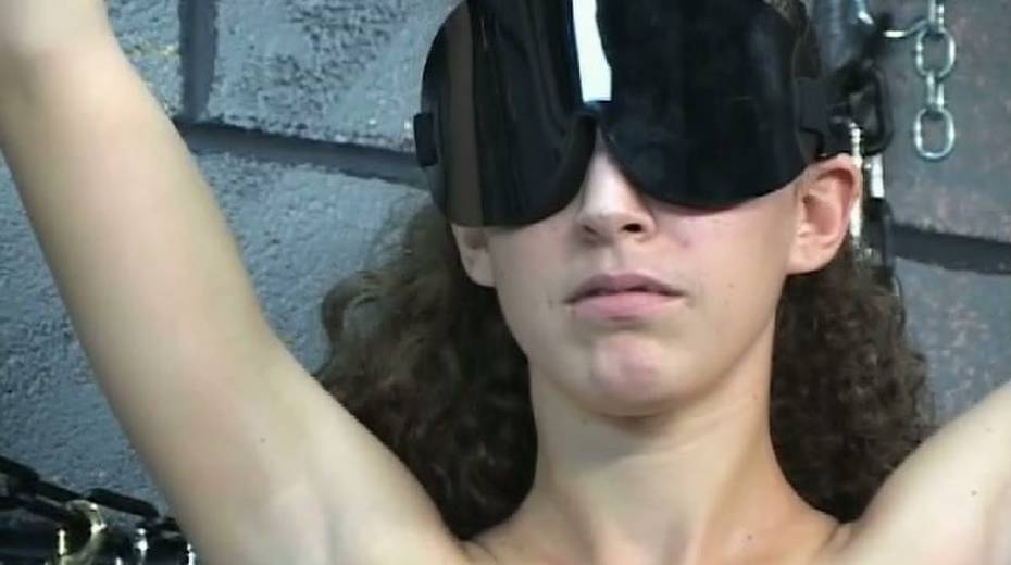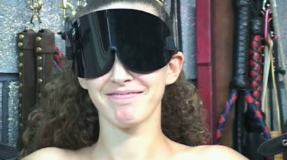 Blind folded gal Nicole is punished by old master