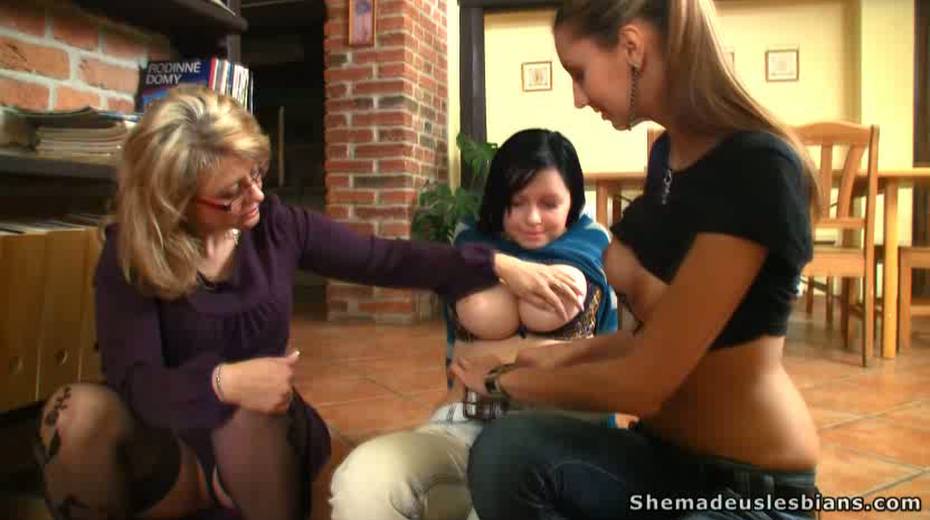 Linda and Nika show their boobs to horny and kinky mature woman
