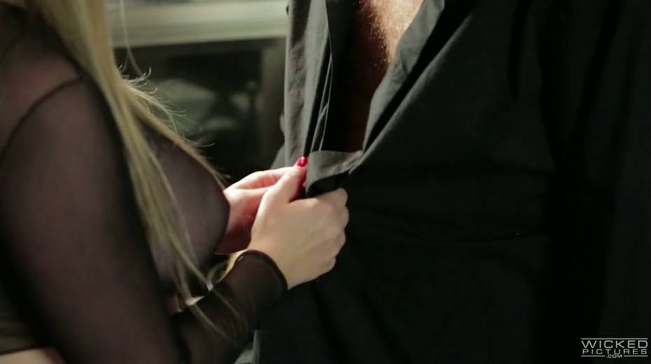 Horny blond MILF has steamy fetish sex with curly haired guy at kitchen