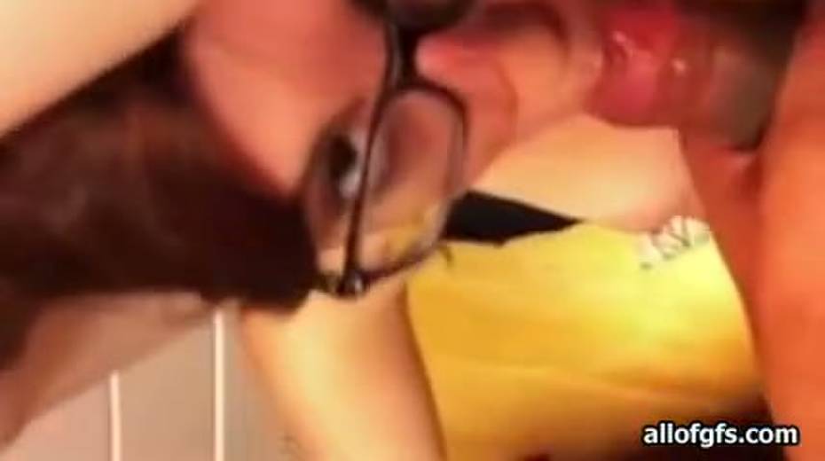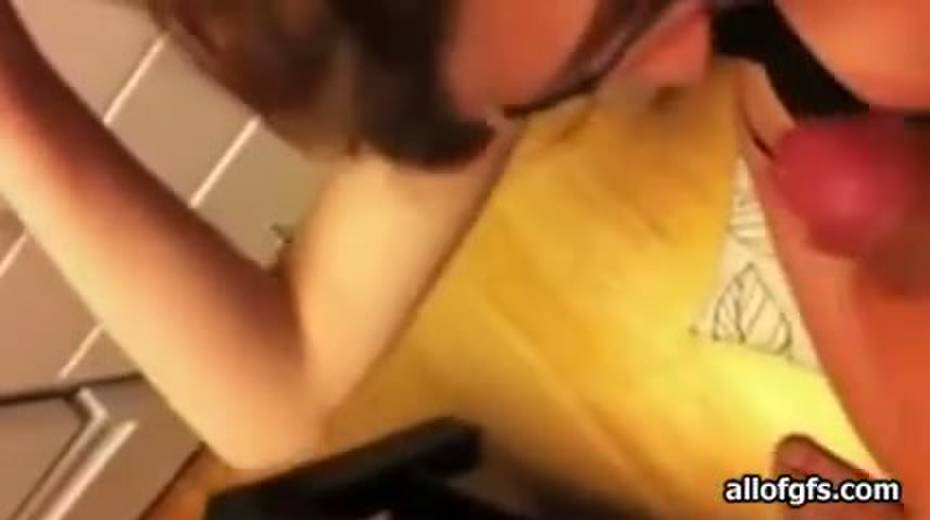 Nerdy coed gets her cock sucking skills tested while she is handcuffed
