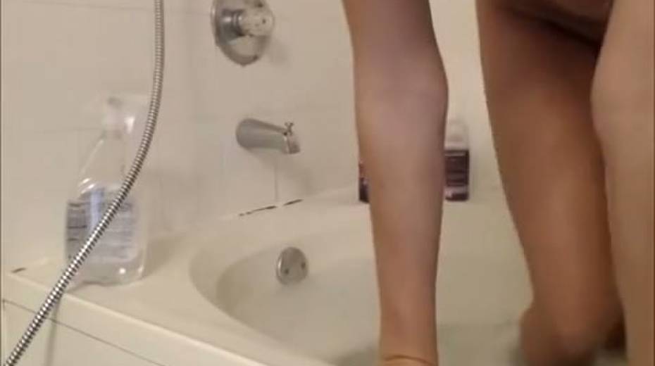 Marvelous blondie with big tits is playing with herself in the bathtub