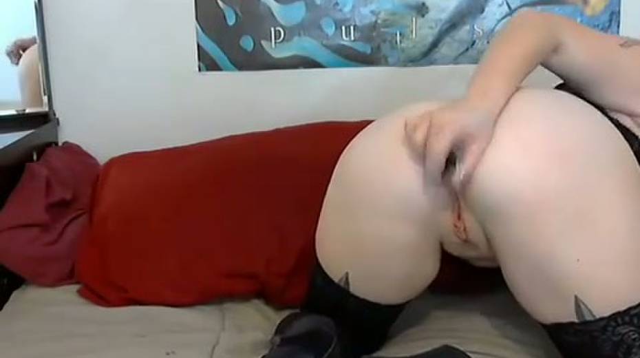 Hot camwhore with a gorgeous butt drills her asshole with her dildo
