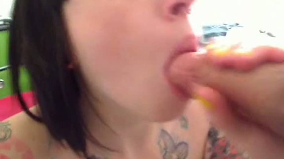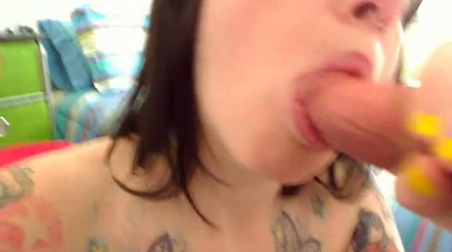 Inked whore with well-matured breasts makes her BF cum with her mouth