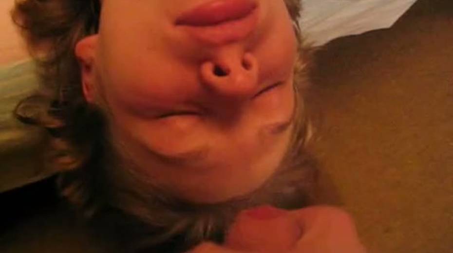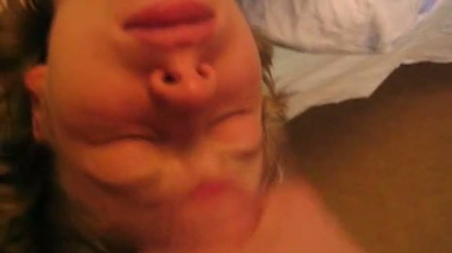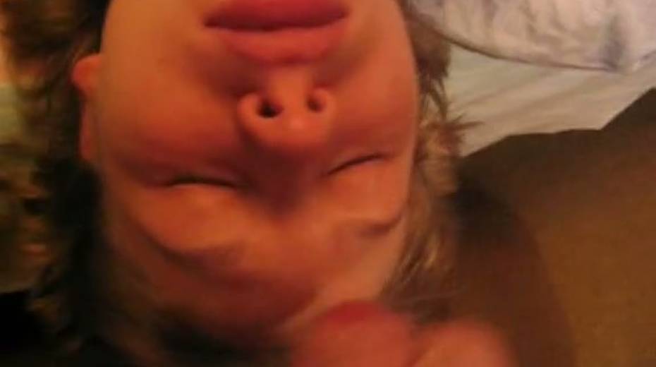 Light haired chick closes her eyes while giving deepthroat blowjob