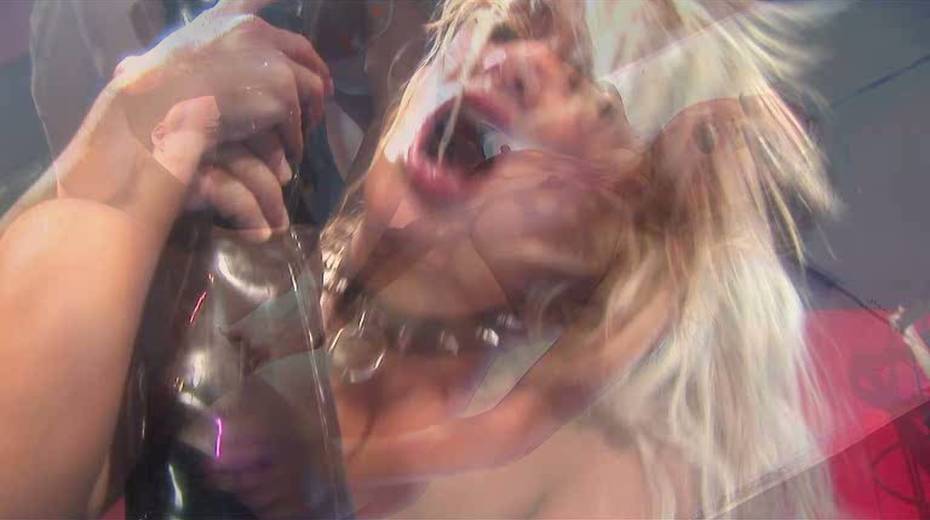 Slutty babes fondle each other and get finger fucked and fucked on the club stage