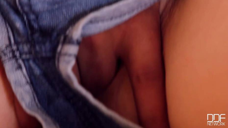 Handsome boyfriend digs playful fingers in girlfriend jeans and stimulates pussy